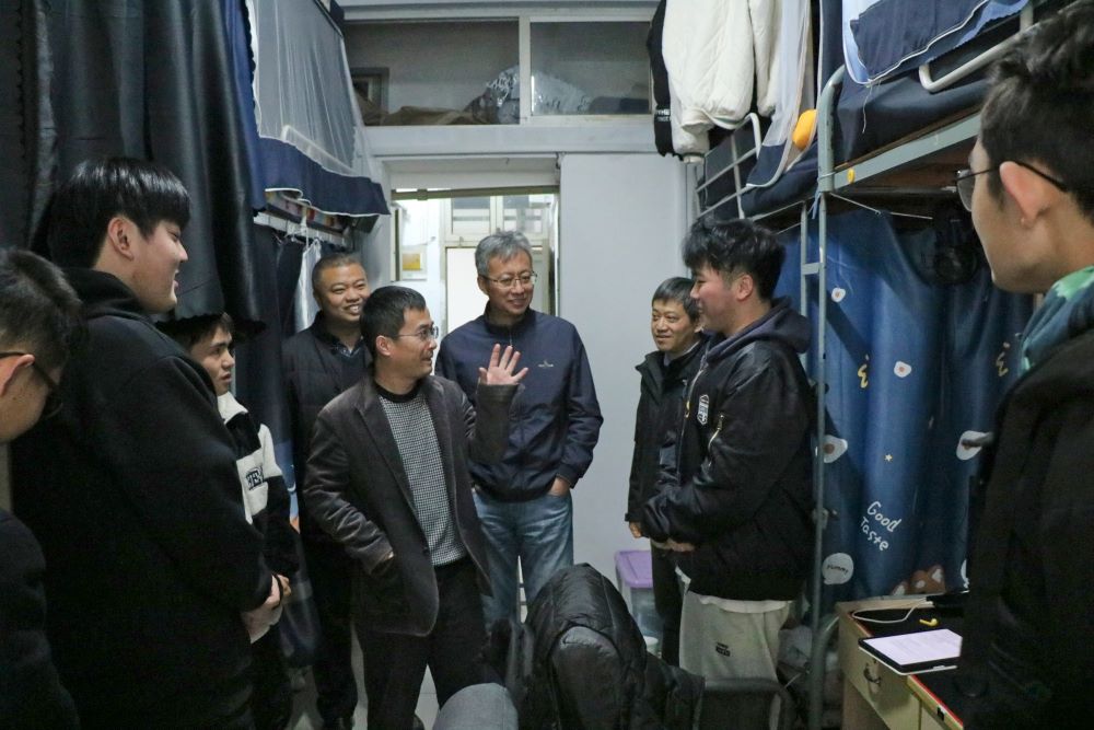 作者:李之坤 图片作者:李之坤 发布日期:2023-02-20 浏览:次为深入了解学生返校情况,排查宿舍安全隐患,关注学生新学期健康状况及思想动态,2月19日,18porn 领导班子及辅导员前往宿舍走访并看望返校学生。