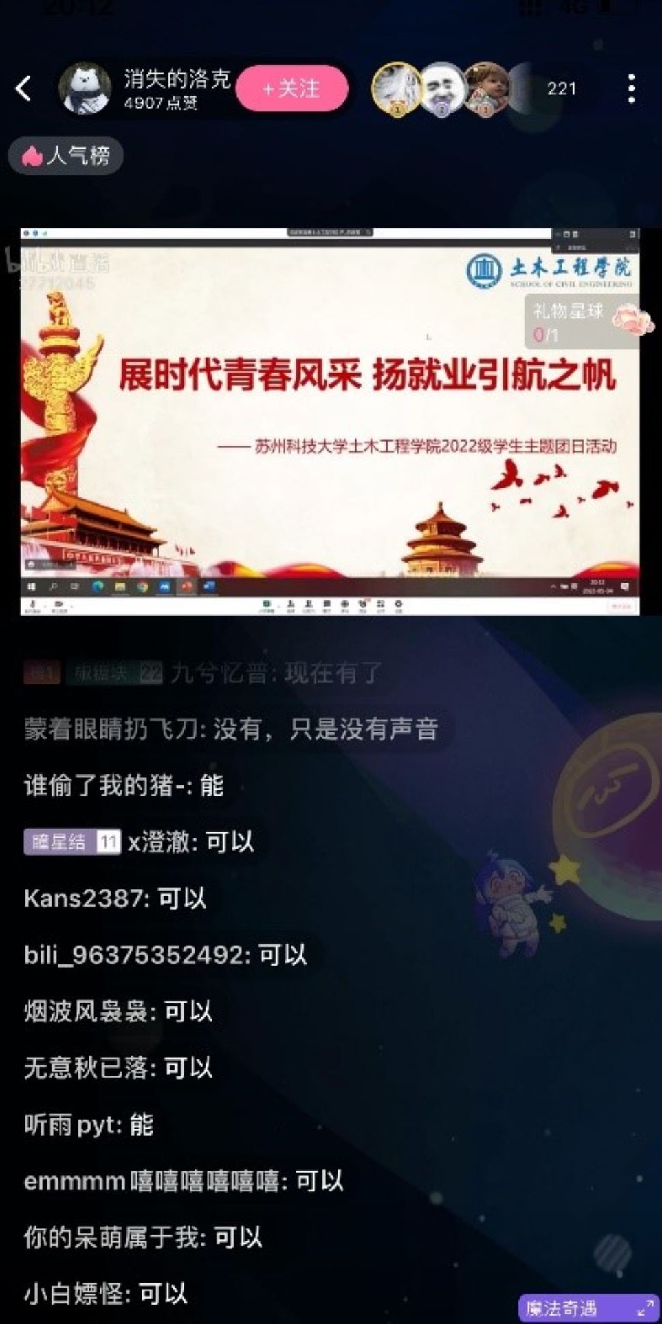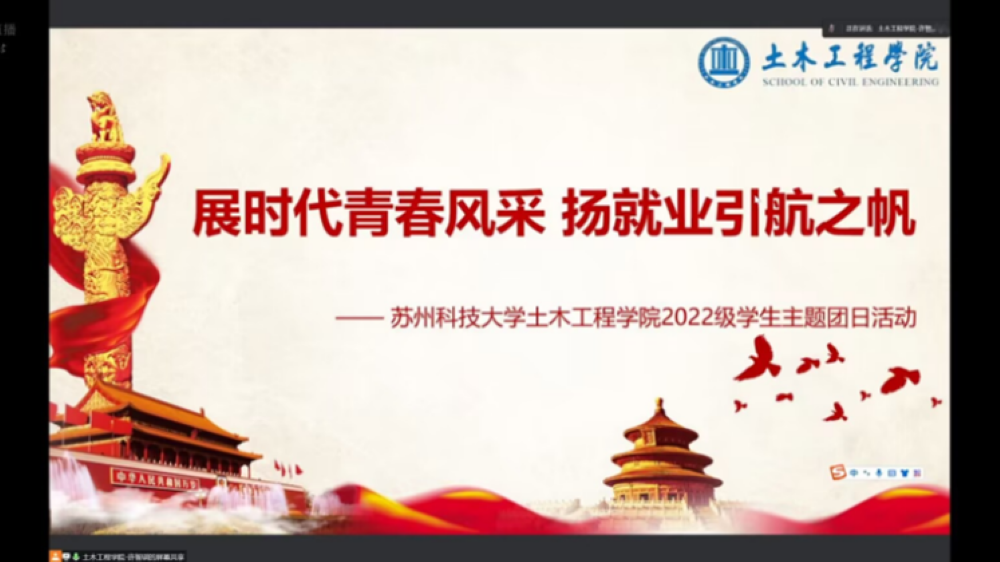 作者:许智琪 仇琦 图片作者:仇琦 发布日期:2023-05-05 浏览:次为深入贯彻落实党的二十大精神,围绕中央经济工作会议提出的“把促进青年特别是高校毕业生就业工作摆在更加突出的位置”的重要要求,引导大学生立足实际、找准定位,树立理性、平实的就业观、择业观,18porn 开展了“展时代青春风采 扬就业引航之帆”线上主题团日活动。本次活动通过腾讯会议、哔哩哔哩平台同步直播,22级全体本科生参加活动,活动由22级辅导员许智琪、仇琦主持。