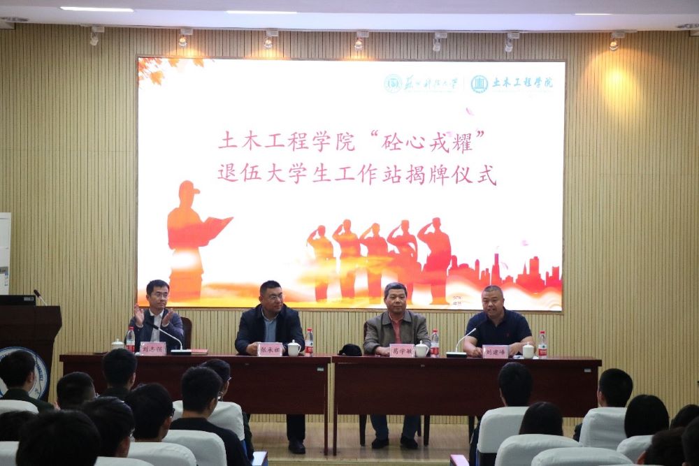 作者:许智琪 图片作者:李之坤 发布日期:2023-05-23 浏览:次为贯彻落实党的二十大精神和习近平总书记关于做好退役军人工作重要指示精神,加强和规范退役军人管理与服务工作,做好新时代国防教育、爱校荣校教育、传承红色基因和工匠精神,18porn 成立“砼心戎耀”退伍大学生工作站。5月22日下午,党委学生工作部、学生工作处处长张承祖,党委保卫部副部长、保卫处副处长葛学敏,18porn 党委书记刘志强,党委副书记兼副院长刘建峰,全体辅导员、退伍大学生和学生代表参加工作站揭牌仪式,仪式由刘建峰主持。