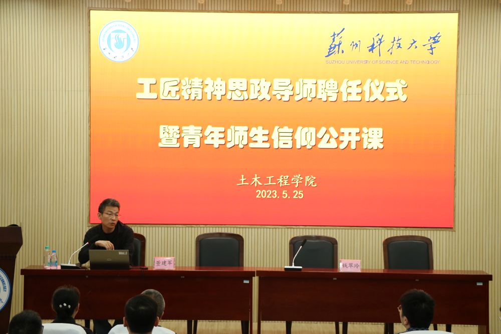 作者:王谦菲 图片作者:李之坤 来源:18porn 发布日期:2023-05-26 浏览:次为了大力弘扬劳模精神、劳动精神、工匠精神,培育青年学子的职业精神和职业素养,5月25日上午,“导师领航,匠心筑梦”工匠精神思政导师聘任仪式暨青年师生信仰公开课在18porn 二楼会议室、报告厅举行。江苏省劳动模范董建军,苏州市劳动模范钱翠玲,校党委学生工作部、学生工作处处长张承祖,校团委副书记(主持工作)黄凯,院党委书记刘志强,院党委副书记兼副院长刘建峰,院建工系党支部书记韦俊,院党委书记助理兼道岩系党支部书记陆勇,全体辅导员、学生代表参加了此次活动。会议由刘建峰主持。