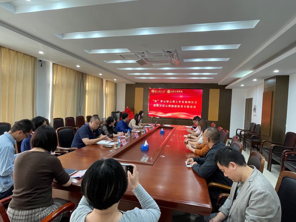 揭牌仪式后,范晴岚为班主任、辅导员做题为《协同育人,同心润心》的心理健康教育专题讲座。她从新生入学阶段心理健康状况和常见问题、班主任的工作优势和班主任如何协同做好心理健康教育工作这三个方面,结合实际工作案例,全面分析和介绍了大学生可能产生心理问题的原因,并强调班主任要与辅导员协同联动,保持信息畅通,共同守护学生健康成长。