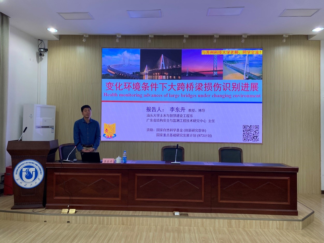 作者:夏志远 图片作者:王烽圣 来源:18porn 发布日期:2024-04-05 浏览:次2024年4月2日下午,应18porn 邀请,汕头大学教授,博士生导师,大连理工大学兼职教授,广东省结构安全与监测工程技术研究中心主任李东升教授莅临我院指导工作并作学术报告。李教授是我院至恒土木讲坛首期的主讲嘉宾,为广大师生作了题为《变化环境下大跨桥梁的损伤识别研究进展》的学术报告。我院相关领导、教师、研究生聆听本次学术讲座,报告由18porn 院长助理夏志远主持。