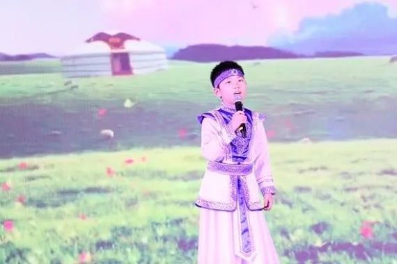 随着背景变为大草原的风景,现场迎来了第二个节目,由陈思睿小朋友带来的《晚安,草原》。他用纯澈的童声为现场的同学献上了属于自己对于毕业生的祝福。