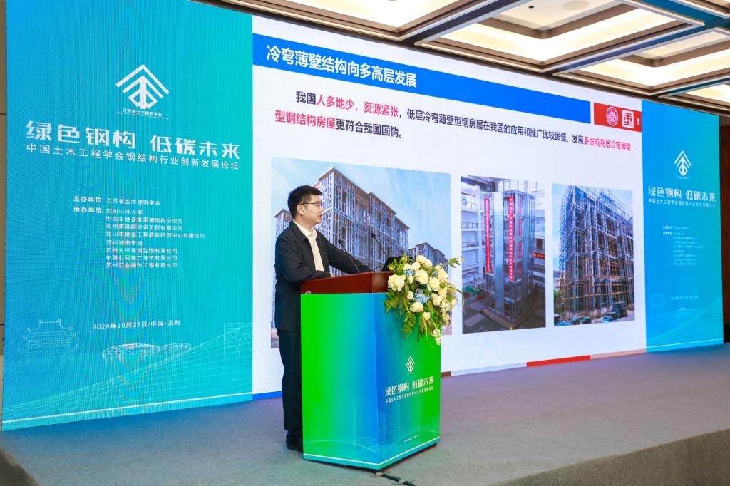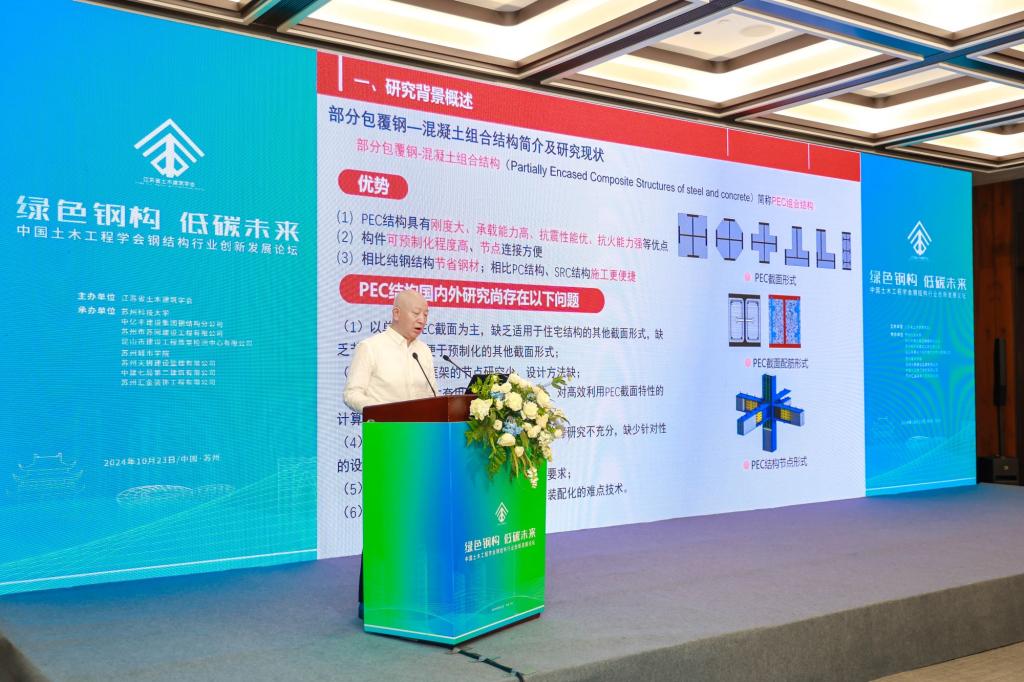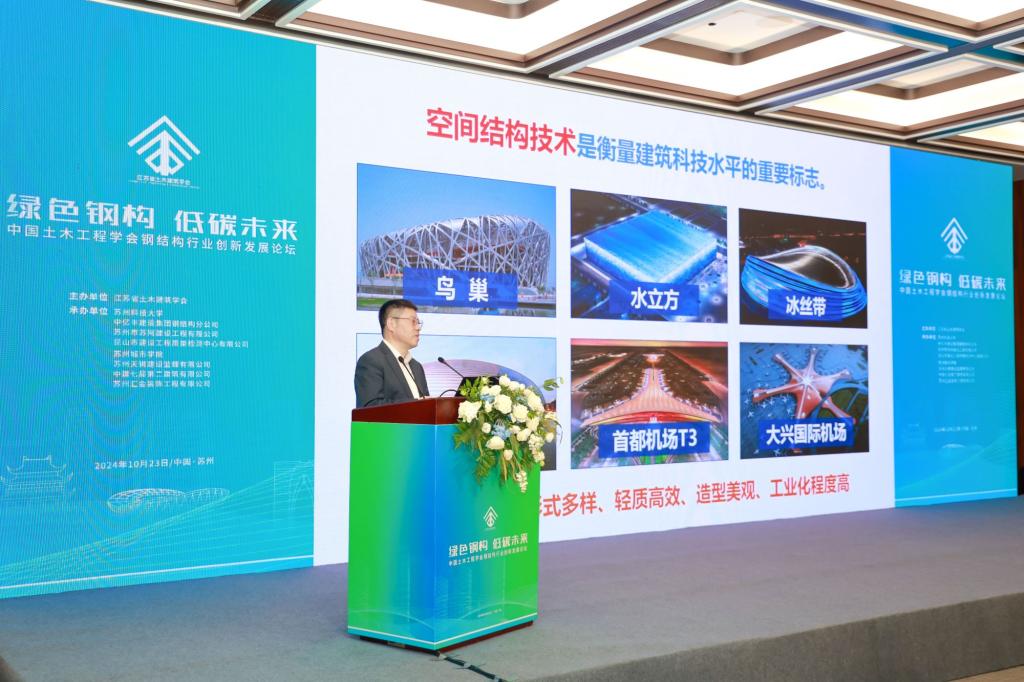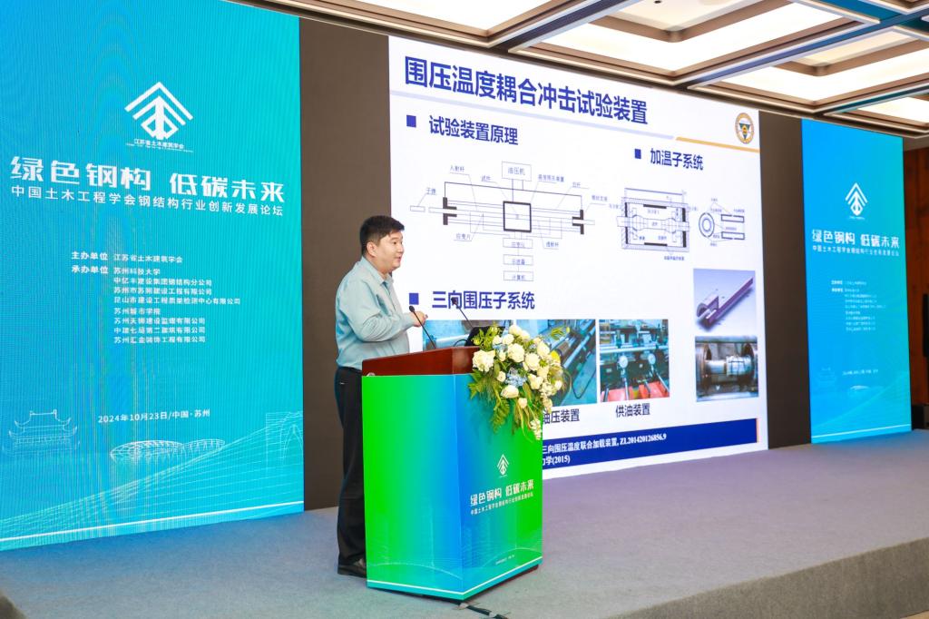 第11分论坛、“绿色钢构 低碳未来”的2024年中国土木工程学会钢结构行业创新发展论坛由江苏省土木建筑学会主办,18porn等8家单位共同承办。18porn常委、副校长崔雪丽,江苏省土木建筑学会钢结构专委会主任委员唐柏鉴,钢结构领域知名专家和学者、企业负责人、钢结构专委会委员、高校师生共有120余人出席会议。与参会代表深入探讨钢结构行业发展的新趋势和新挑战,以科技创新、资源整合和信息共享为载体,交流近年来取得的新进展,共同推动行业向高效化、绿色化、智能化发展。
