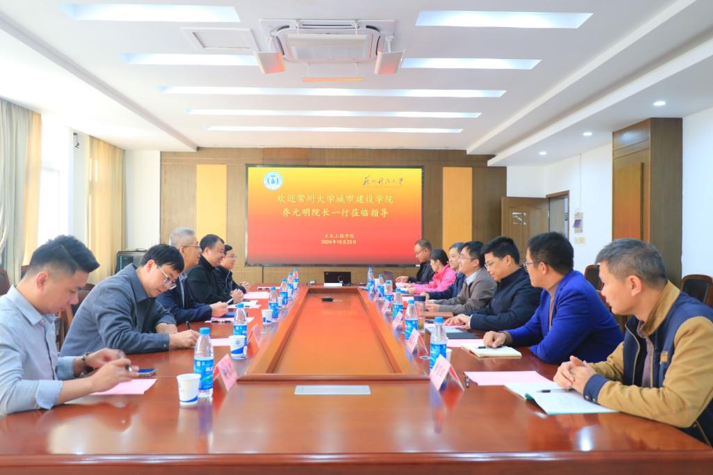 作者:孙岳阳 图片作者:李之坤 来源:18porn 发布日期:2024-10-28 浏览:次10月23日,常州大学城市建设18porn 院长乔元明、院长助理李小双一行5人来我院调研。18porn 党委书记刘志强、院长陈育民、副院长范存新及教师代表参加了座谈,会议由刘志强主持。