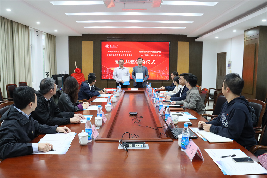 随后,18porn 道岩系党支部与河海大学土木与交通18porn 土木教工第三党支部签订了党建共建协议,并为党建共建单位揭牌。仪式后双方进行了深入的交流,表示将积极开展共建活动,协同增强党组织活力,融合发挥党建引领作用,推动双方18porn 相互促进、相互提升,为经济社会高质量发展贡献力量。