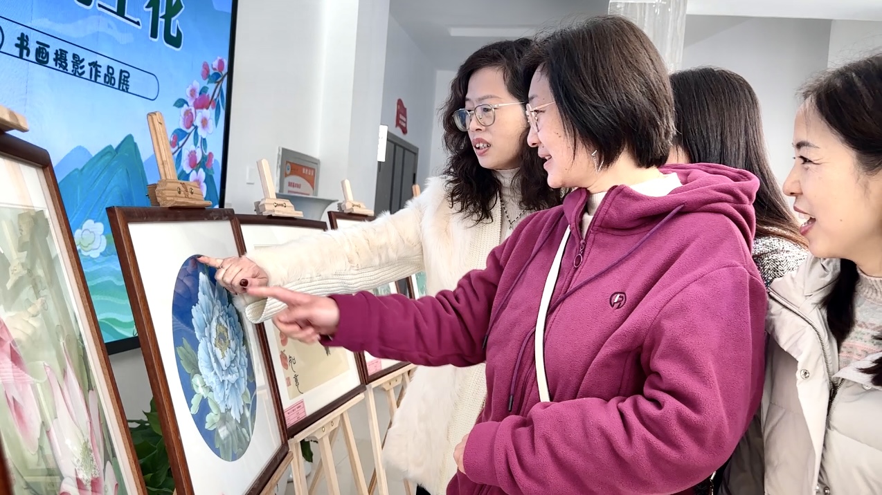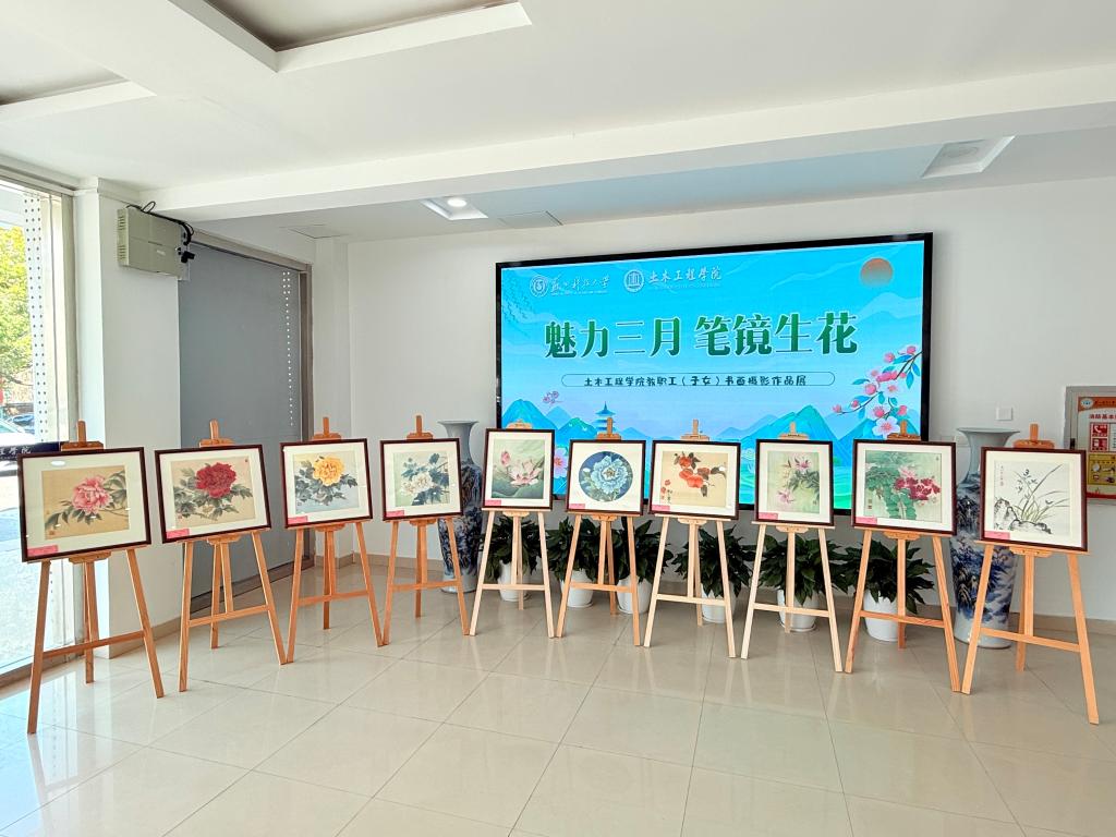 展览分为书画和摄影两部分,充分展现了教工及其子女的艺术才华。在书画展区,教工们以工笔画为主,描绘了春日盛景,如牡丹、紫荆花、兰花等,作品细腻生动,展现了他们对生活的热爱与艺术追求。教工子女的作品则充满童趣,孩子们用画笔描绘出五彩斑斓的世界,表达了对未来的美好憧憬。摄影展区则通过镜头记录了生活的点滴,包括春日樱花、校园景色、亲子互动、运动场景及学雷锋活动等,展现了教工们积极向上的精神风貌。