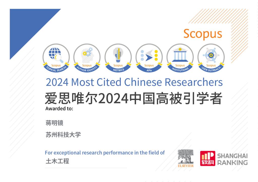 我院蒋明镜教授连续六年入选Elsevier“中国高被引学者”榜单