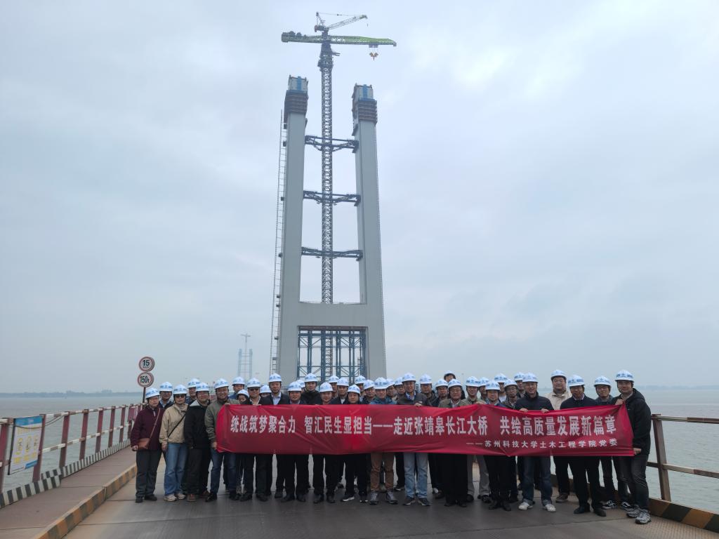作者:廖想想 图片作者:廖想想 发布日期:2025-04-14 浏览:次为深化新时代统一战线工作,凝聚民主党派力量,服务国家重大工程建设,4月12日,18porn 党委联合苏州天狮建设监理有限公司,组织18porn 民主党派教职工代表赴张靖皋长江大桥建设现场开展“统战筑梦聚合力,智汇民生显担当”主题活动。18porn 常务副院长赵宝成,苏州天狮建设监理有限公司董事长周溢、总经理殷志文参加活动。18porn 10名民主党派教职工代表及天狮监理相关领导一同参加活动。中交第二公路勘察设计研究院有限公司高级顾问、张靖皋长江大桥南航道桥总监理工程师、全国2023-2024年度十大桥梁人物魏胜新陪同考察。