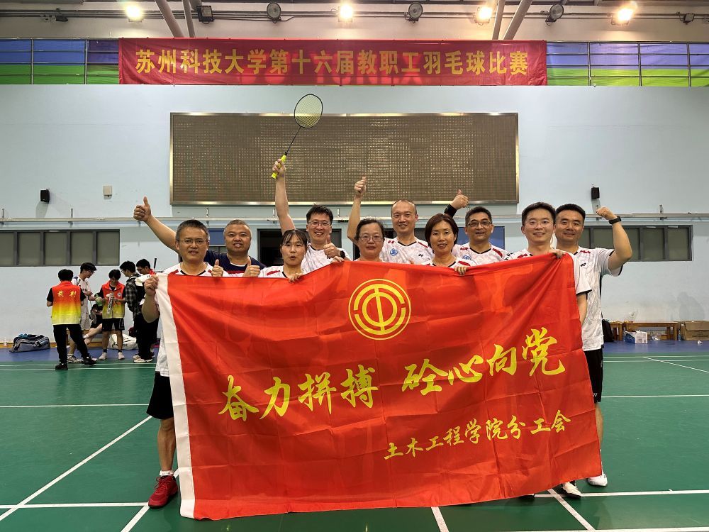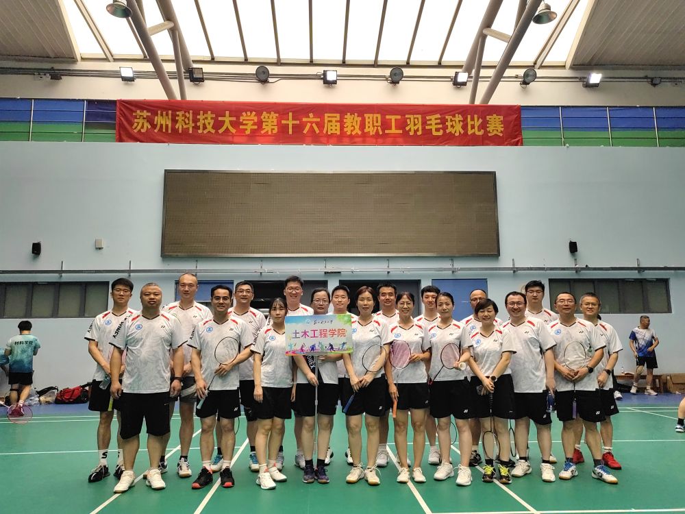 作者:袁晓静 图片作者:袁晓静 来源:18porn 发布日期:2025-04-28 浏览:次2025年4月25日,苏州科技大学第十六届教职工羽毛球比赛圆满落幕。本届赛事由校工会主办,全校30余支教职工队伍参赛。18porn 派出的一队、二队,凭借顽强拼搏的精神和默契协作的团队表现,双双实现历史性突破:土木一队勇夺季军,二队首次挺进16强,展现了土木人锐意进取、昂扬向上的精神风貌。