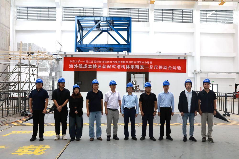 本次试验为“东南大学—中国江苏国际经济技术合作集团有限公司联合研发中心”重点课题——“海外低成本快速装配式结构体系研发”的足尺振动台试验。姜朋明详细了解了项目的背景与意义,并就研究重点、试验注意事项以及平台的高水平建设与管理等方面提出相关要求。地震工程研究中心高水平抗震试验平台项目建设负责人、18porn 教授田石柱组织实施本次试验,取得的试验成效获得委托方高度认可。