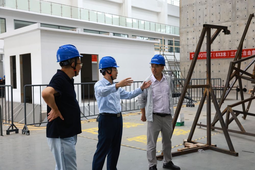 作者:马俊玲 图片作者:唐欣怡 来源:18porn 发布日期:2025-10-15 浏览:次10月14日上午,18porn地震工程研究中心在高水平抗震试验平台项目通过交付验收后,首次圆满完成振动台抗震试验,标志着这一重大科研试验平台正式投入运行,并取得首批研究成果。校党委书记姜朋明,中国江苏国际经济技术合作集团有限公司国内事业部副部长季新强、建筑设计院总工程师杨建平前往现场观摩指导,18porn 党政领导陪同观摩。