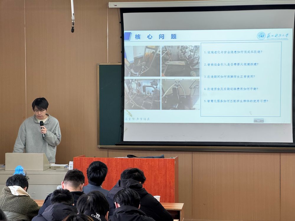 作者:田鹏许、吴芳 图片作者:吴芳 来源:18porn 发布日期:2025-11-25 浏览:次2025年11月21日周五3-4节,江枫校区J7教室气氛热烈,23级工程管理专业学生以饱满的热情展示并汇报了各自的物业服务策划方案。由苏州华心科技服务集团(后简称华心集团)的高管队伍组成的专家评委们以专业视角给予细致点评与指导,现场掌声不断。多位评委在精彩方案的感染下,主动走上讲台,近距离给予赞誉与建议,将课堂氛围推向高潮。此次展示标志着工程管理系与华心集团合作的产教融合课程——《房地产概论》物业服务模块首次授课顺利结课。