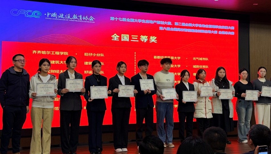 此次获奖是我院在房地产相关专业人才培养领域的又一重要成果。未来,学院将继续以各类高水平赛事为抓手,深化实践教学改革,强化校企协同育人,助力学子在专业成长道路上再创佳绩。