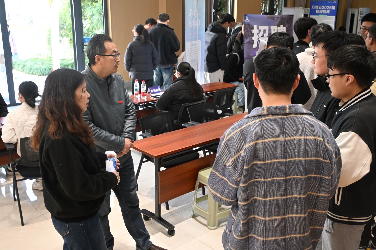 作者:仇琦 图片作者:吴奇 张子杨 来源:18porn 发布日期:2025-11-29 浏览:次为深化校企协同育人,架设精准供需对接桥梁,切实推动毕业生就业工作提质增效。11月28日下午,18porn 在教工之家成功举办2026届毕业生第三场秋季招聘会。副院长蔡新江、翟相华及毕业班辅导员亲临现场,与多家参会企业代表及求职学生进行了深入交流。近200名应届毕业生踊跃参与,现场气氛热烈。