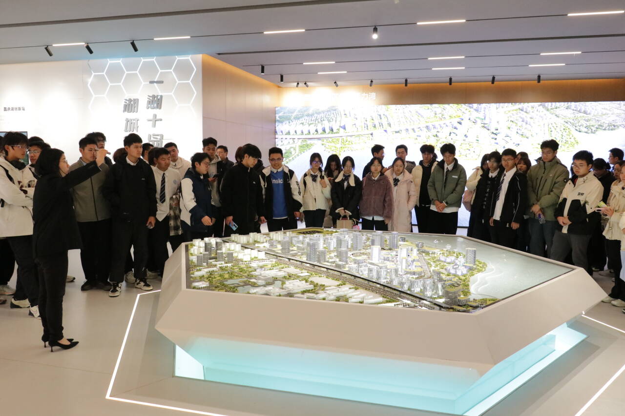 同学们还参观了展示常熟未来蓝图的中新昆承湖园区展示中心和常熟市UWC+创新岛项目。宏大的规划沙盘、前沿的产业布局、国际化的合作视野,向大家描绘了一幅产城融会、绿色创新的发展画卷。特别是UWC+创新岛所倡导的跨文化融合与科技创新理念,与“钱七虎卓越班”培养拔尖创新人才的目标不谋而合,激发了同学们对未来的无限憧憬与投身建设的热情。