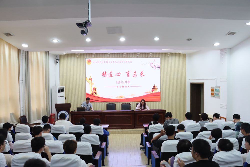 陆勇老师讲述了我院教师在南海岛礁建设、深海能源开发、西部交通建设、古建园林保护等重点领域攻克层层难关、作出积极贡献的事迹,激励学生要秉持工匠精神,积极服务国家战略、服务人民需要。