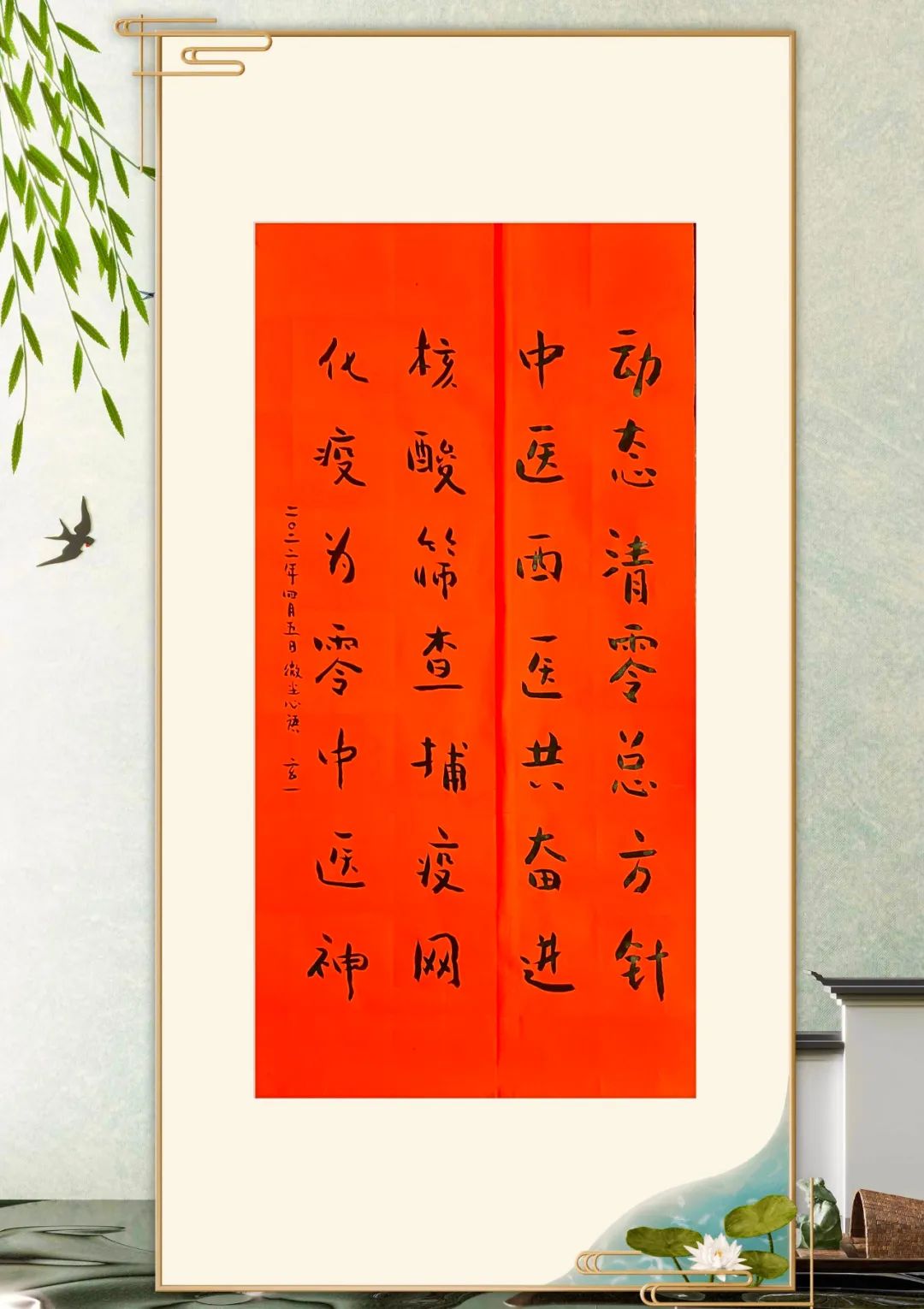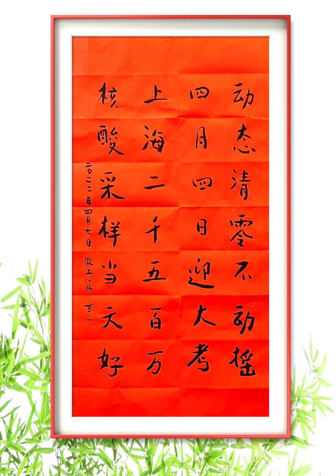 其实这并不是姚老第一次记录疫情生活感悟,由50多幅书画组成的“抗疫记录”——《战“疫”墨香·宅思心语》是早在2020年疫情突发之际姚老通过书法形式记录下的抗疫感悟。这些作品不仅表达“疫去终有时”的期盼,还体现出姚老注重中华传统文化,弘扬中华美学精神,用书法这一墨色古香的方式,向外界青年同志们传递着书法的重要性——养浩然之气,得天地灵性,纳万物之菁华,她承载着文明的曙光从远古走来。