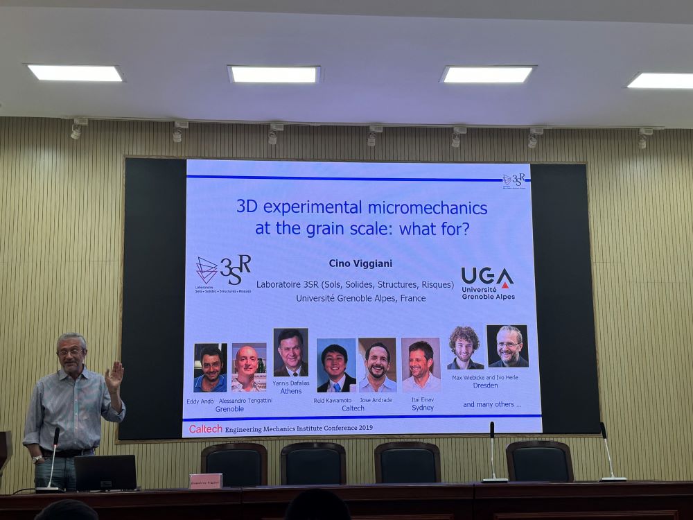 Viggiani教授在报告中与师生们分享了他在三维试验微观力学方面研究的最新成果和思考。他首先介绍了X射线在岩土工程领域应用的发展历程以及从颗粒尺度研究岩土力学机理的实际意义,然后详细讲述了一个基于微观力学的连续介质模型,和由Jose Andrade团队研发的LS-DEM-Work插件,并分享了部分三维组构张量量测方面的结果。