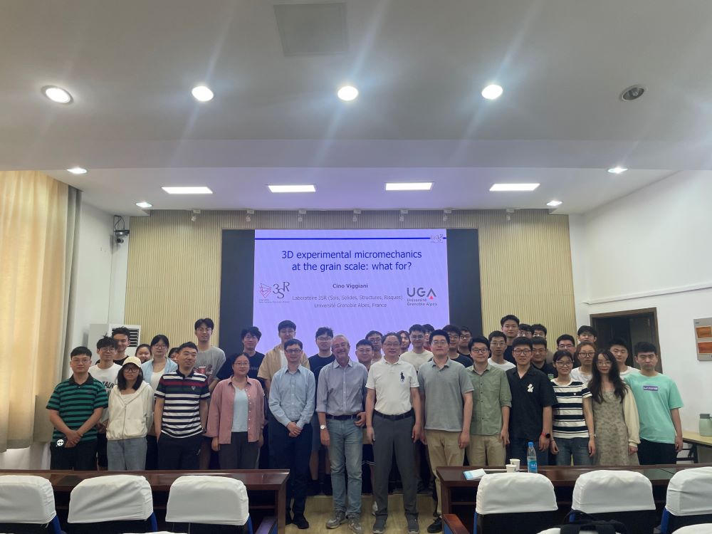 作者:王浩栋 韩亮 来源:18porn 发布日期:2024-06-06 浏览:次2024年6月4日上午9:30,在18porn 北楼二楼报告厅,来自法国格勒诺布尔-阿尔卑斯大学的Gioacchino Viggiani教授应蒋明镜教授邀请为我院师生作了题为“3D experimental micromechanics at the grain scale: what for”的学术报告。