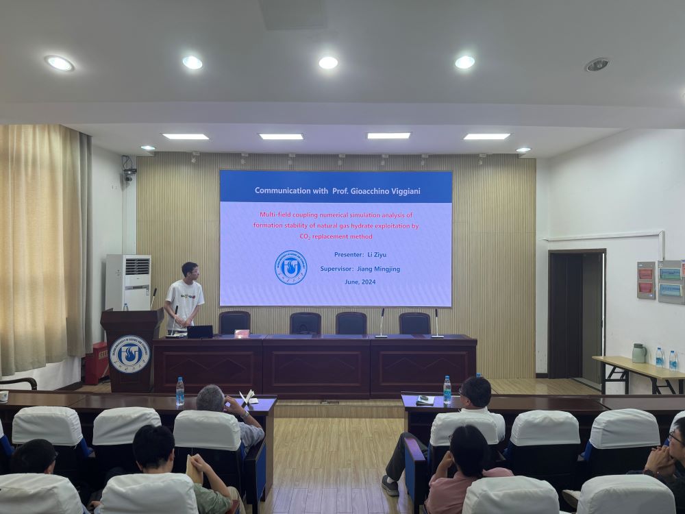 Viggiani教授的报告深入浅出,开拓了大家的学术眼界,师生认真听讲、记录,并就相关问题与Viggiani教授开展深入交流。报告结束后我院董硕等8名研究生向Viggiani教授展示了自己的研究成果,Viggiani教授对每位同学的研究工作进行了详细点评。