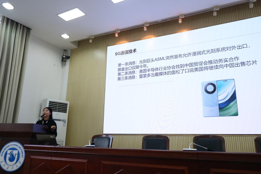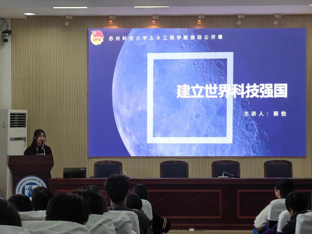课程围绕“世界发展趋势”“我国科技发展现状”“我国科技成果展示”以及“展望未来”四个方面展开。陈怡指出,我国整体科技实力的显著增强得益于党的领导和国家的政策支持,目前我国的5G通信技术、载人航天技术和稀土提取加工技术遥遥领先,但未来仍有大批领域要去探索、去攀登。建立世界科技强国不仅对于国家的发展和繁荣具有重要意义,也对于人类社会的进步和发展具有重要影响,陈怡激励在座学生树立终身学习的意识,为国家科研事业努力奋斗。