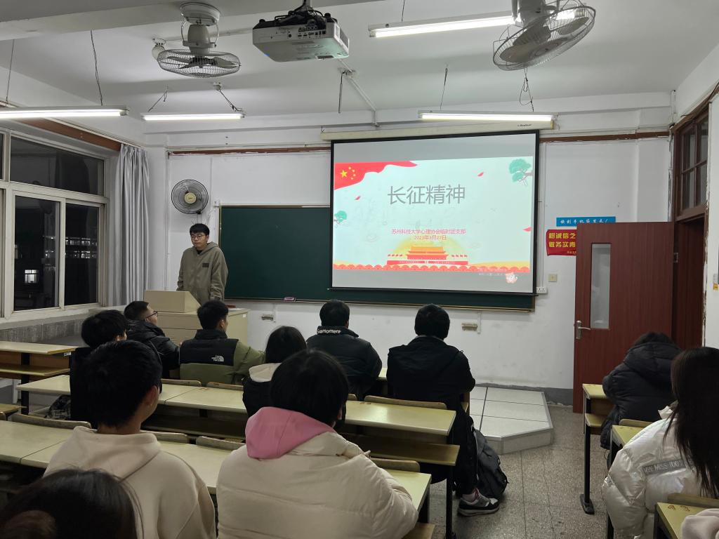 发布日期:2023-03-27 浏览:次“忆往昔峥嵘岁月,风华正茂挥斥方遒”。为引导同学们追寻红色足迹,锤炼坚定信仰,2023年3月27日,18porn 心理协会于2教405展开了长征精神学习活动。本次活动由邱锐同学主持。