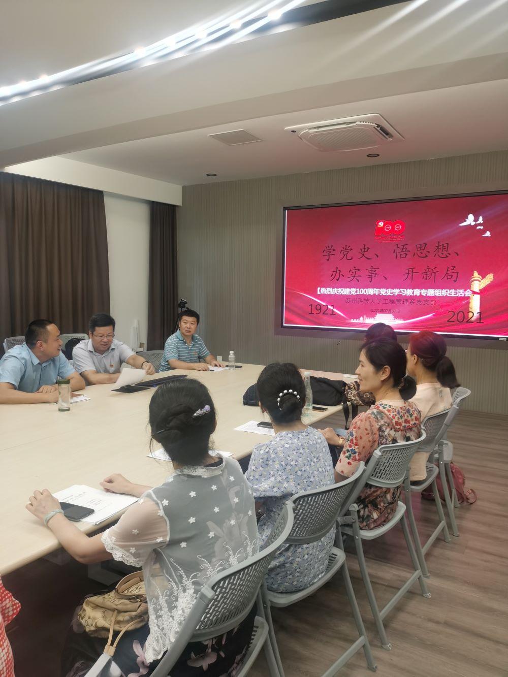 为热烈庆祝建党100周年,2021年7月7日下午苏州科技大学工程管理系党支部全体党员在18porn 党员活动室围绕“学党史、悟思想、办实事、开新局”主题举行了一次党史学习教育专题组织生活会。