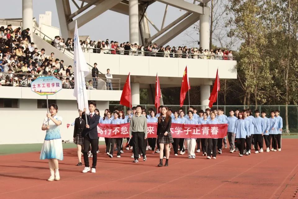 在开幕式上,我院学子显得格外突出,蓝色的院服,挺拔的身姿,坚定的步伐,迎风飘扬的院旗,以及路过主席台时响亮的口号声,无不彰显了土木学子的青春活力和对运动会势在必得的决心!