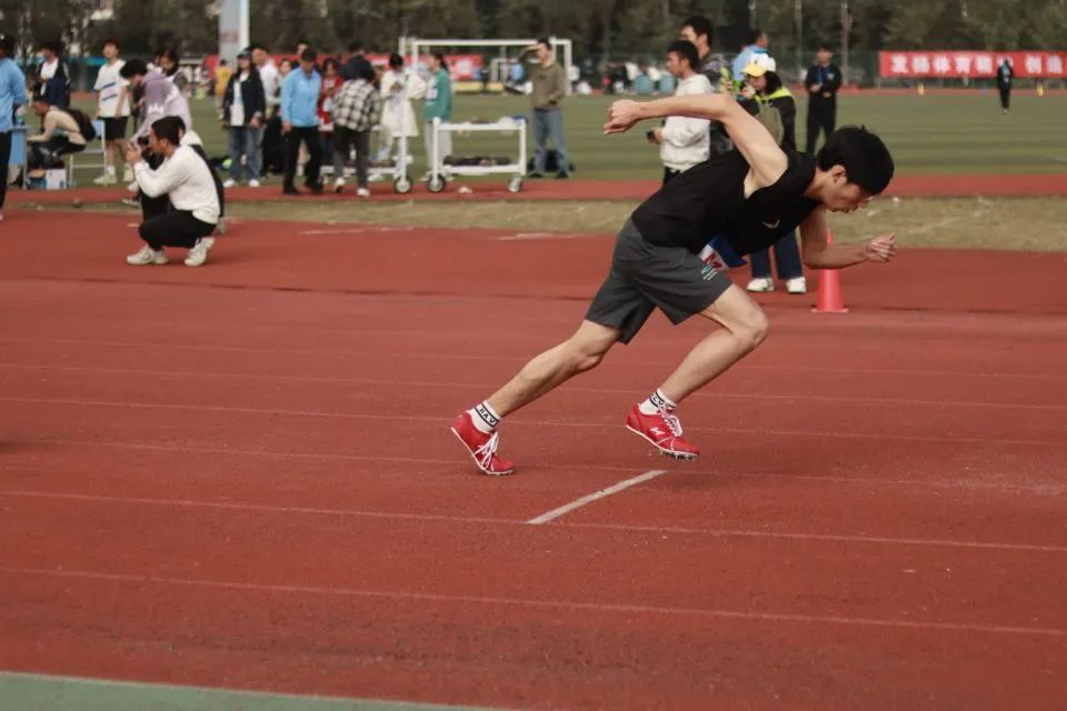 随着发令枪响,我院的运动员奋力向前冲刺,如同一支离弦的箭飞了出去。赛道上,土木院的运动员奋力拼搏,突出重围,每一个奔跑着的运动员都镀上了一层金光,他们像光一样灵活地跳跃着、奔跑着。