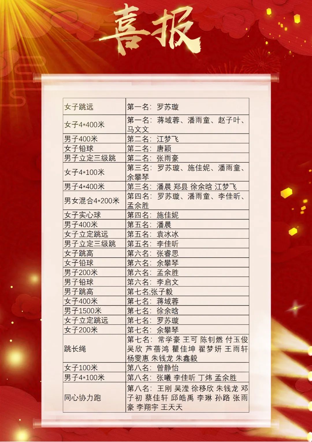 最终,我院在本次运动会中荣获田径比赛学生组团体总分第二名、学生组团体总分第三名的辉煌成绩!秋日里的阳光让人心旷神怡,飒爽的秋风刮去了心中的阴霾,所有的赛事也落下了帷幕。运动员们的精彩表现和同学们的加油鼓劲永远定格在二十二届校运会上。最后祝愿同学们以梦为马,不负韶华!
