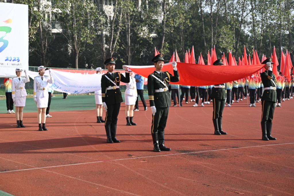 10月19日早晨8点30分,国旗护卫队迈着铿锵有力的步伐,手举耀眼夺目的五星红旗,拉开了运动会开幕式的序幕。身着绿衣的18porn 代表队迈着矫健的步伐入场,他们手持钱七虎院士参与设计的南京长江隧道、港珠澳大桥隧道等项目缩略图及模型,表达了践行钱七虎卓越班“拼搏笃行、成才报国”班训精神的决心。他们精神抖擞、神采飞扬,铿锵有力的步伐、高亢嘹亮的口号充分展现了土木学子朝气蓬勃的精神风貌。随着校党委书记姜朋明的庄严宣布,苏州科技大学第二十三届运动会正式开幕。