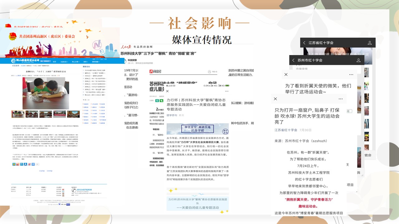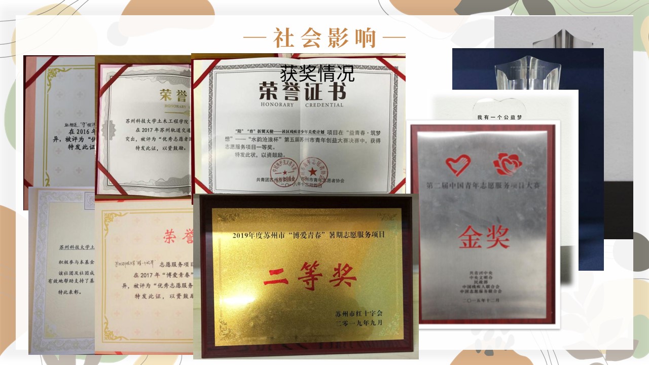 近年来,团队项目获得省市级多项表彰,荣誉和奖励是对项目和团队的充分认可。其次是媒体宣传情况,我们的一个协会的力量终归有限,而有了媒体的宣传,会让更多的人关注甚至加入到志愿服务中来。社会志愿力量越强大,能够被帮助的人就会越多。类似于“来自星星的孩子“的特殊群体也能得到更多的关注和帮助。