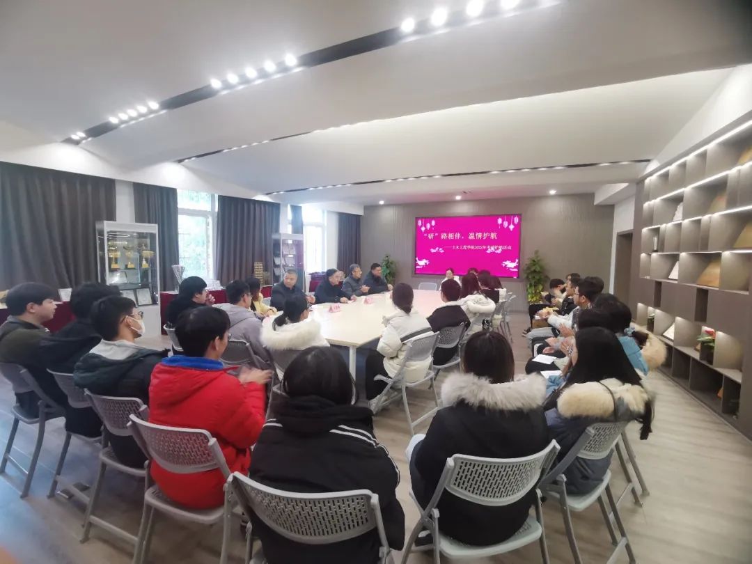 发布日期:2021-12-14 浏览:次2022年全国研究生入学考试已进入倒计时阶段,为增强考研学子备考信心,舒缓心理压力,帮助考研学生坚定目标、以饱满的精神状态和最佳状态做好临考冲刺,18porn 于12月14日下午开展了“研”路相伴,温情护航暨2022届毕业生考研护航系列活动,活动分为考研学生代表座谈和考研送温暖两个部分。2022届考研学生代表和毕业班辅导员参加了座谈会,院领导刘凡、刘建峰、赵宝成、陈鑫出席座谈会,座谈会由18porn 学工办主任陈玮主持。
