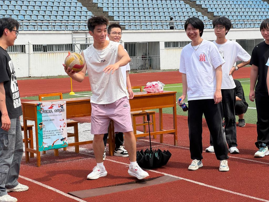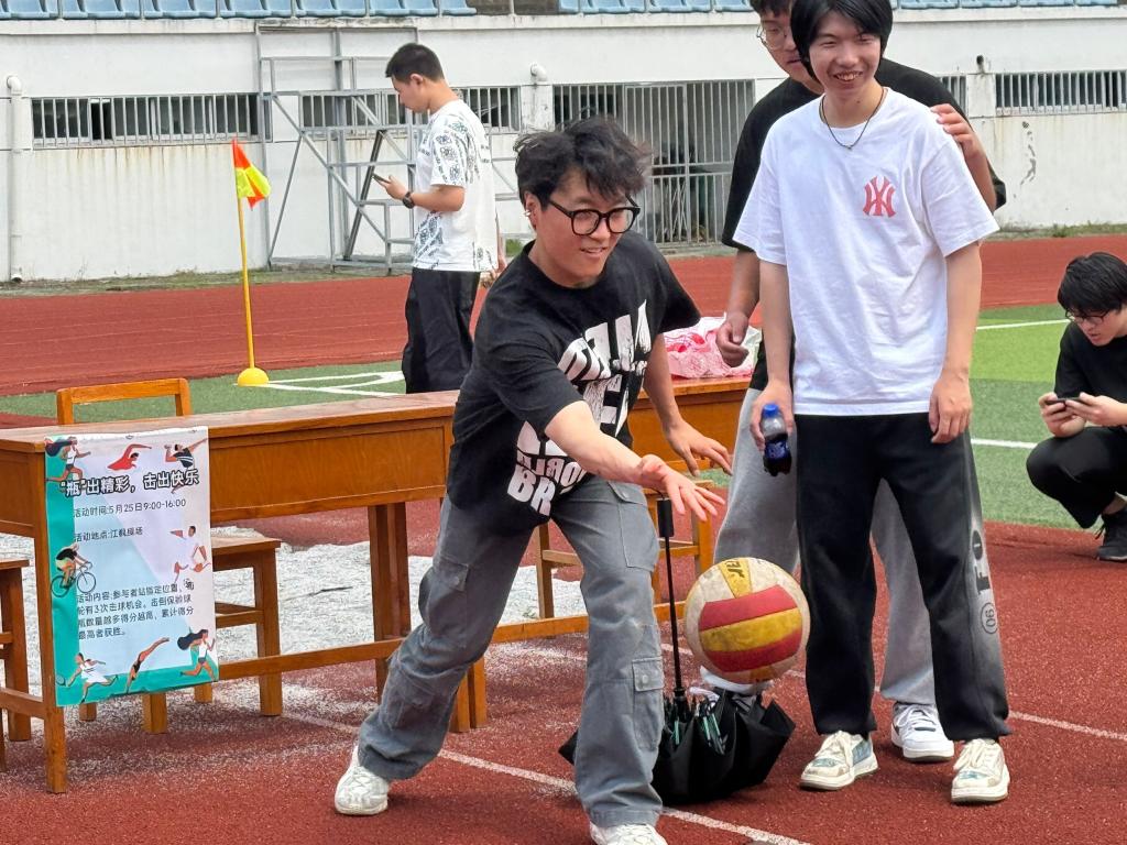每位同学均拥有三次投掷机会,可用沙包击打纸杯,亦能用排球击打水瓶,小组击中次数总和多者获胜。赛场上,选手们全神贯注,认真瞄准、奋力投掷。三次尝试机会里,有人首次即全中,有人在不断尝试中总结经验逆转战局。大家相互加油鼓劲,每次击中瓶阵的瞬间总能引发阵阵欢呼。