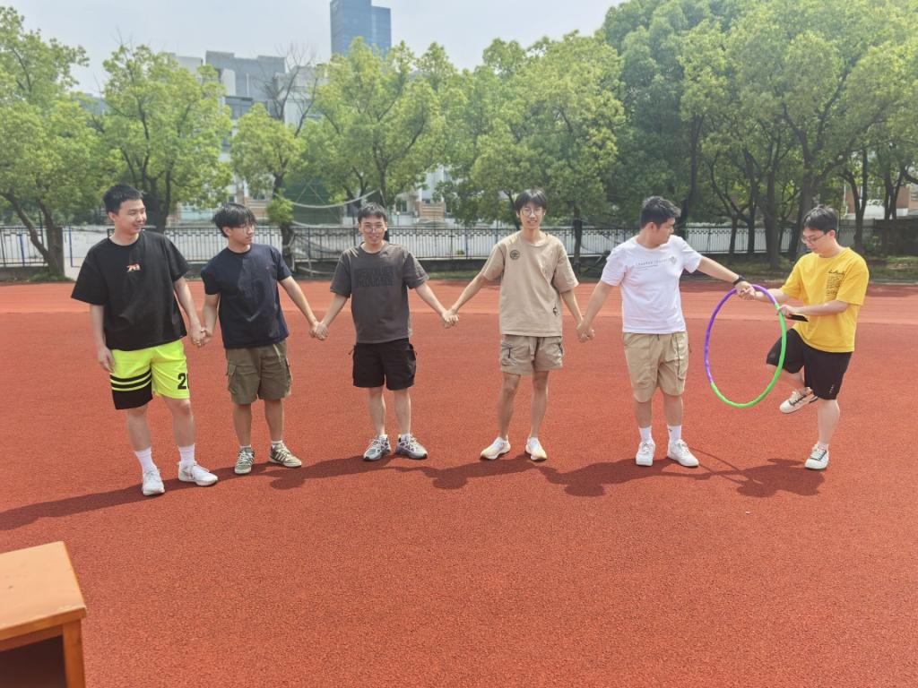活动中,参与者需手拉手排成一排,在不松手的情况下使呼啦圈从一段传递到另一段。各组队员手拉手形成紧密队列,呼啦圈在人群中快速穿梭,加油声此起彼伏,各队以流畅配合诠释团队默契。通过团队协作增强了团队沟通互助与玩呼啦圈的趣味性。活动现场欢声不断,同学们在传递中默契配合,互帮互助,展现了工程学子和睦互励的生活风采。