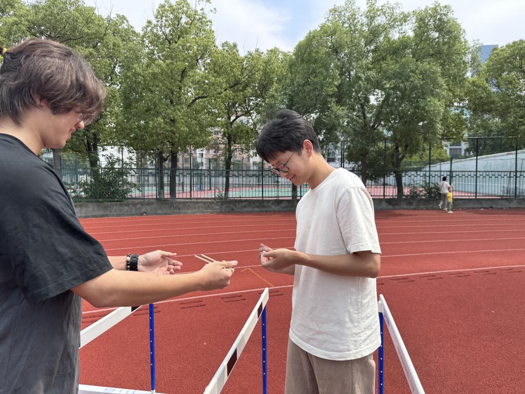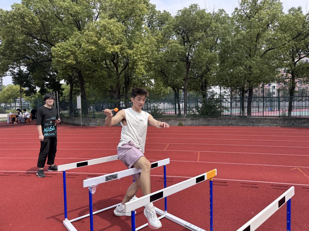 项目中,参与者用筷子夹乒乓球完成障碍接力,锻炼了同学们的手部精细操作能力。通过团队协作与问答环节增强了沟通技巧和情绪管理能力,同学们在竞技中默契配合,展现了土木学子“力与智”的结合。