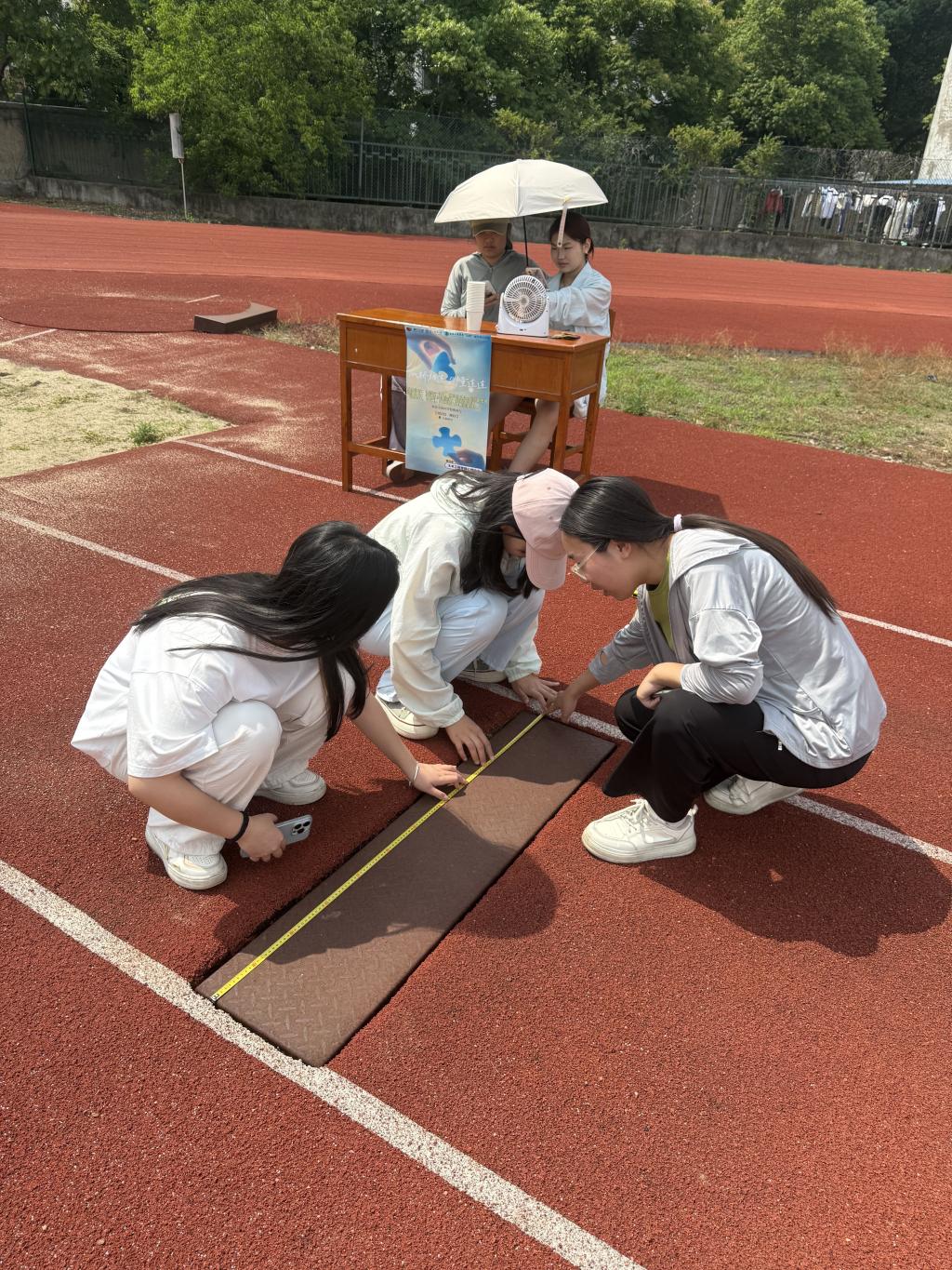 团队成员分工协作,卷尺丈量间精准计算,心理互动小游戏让严肃的专业技能挑战充满轻松氛围。随着比赛哨声响起,参赛选手两人一组迅速投入“战斗”。他们手持卷尺,围绕指定建筑构件展开精准测量,既要保证数据误差在毫厘之间,又要比拼完成速度。赛场上,有的小组分工明确,主测者专注校准刻度,记录员同步复核数据;有的团队反复核验关键数值,确保结果精准无误。项目将测量实践融入趣味竞赛,让同学们在紧张刺激的比拼中,既夯实了专业基础,又在协作中释放了压力。