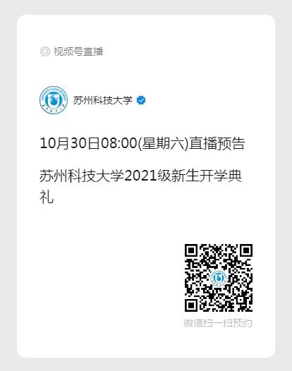 苏州科技大学官方微信视频号将对开学典礼进行直播,请使用微信扫描或识别下方二维码或搜索“苏州科技大学视频号”提前关注。