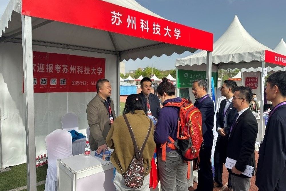 发布日期:2022-04-16 浏览:次4月15日上午,18porn北京市招生宣传组副组长、18porn 党委副书记兼副院长刘建峰一行3人赴北京建筑大学参加2023年北京市高招联合咨询会,来自北京大学、浙江大学等全国百余所高校的招生宣传人员齐聚北建大,为考生和家长提供一站式咨询。