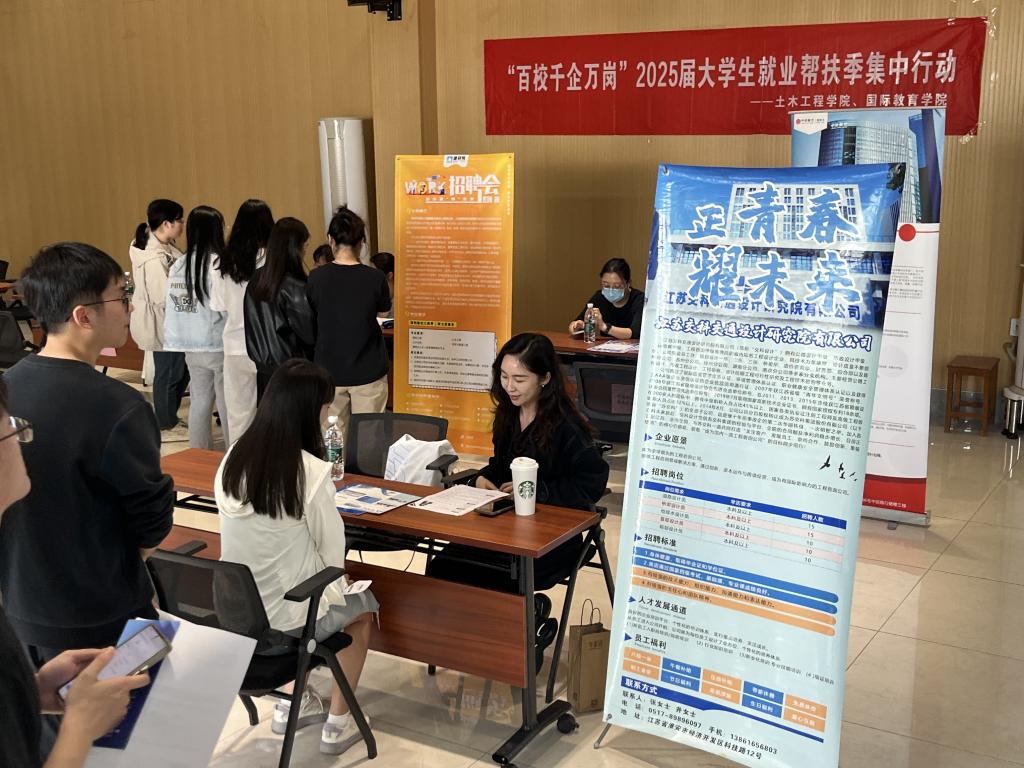 发布日期:2025-05-12 浏览:次为助力2025届毕业生高质量就业,18porn 与国际教育18porn 于5月9日下午在江枫校区教工之家联合举办"百校千企万岗"大学生就业帮扶季集中行动。活动吸引多家企业参与,涵盖土木工程、工程管理、设计研究等领域。毕业班辅导员来到招聘会现场指导2025届毕业生求职。