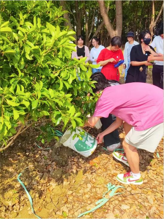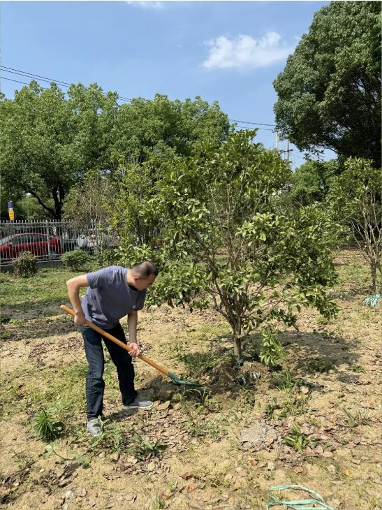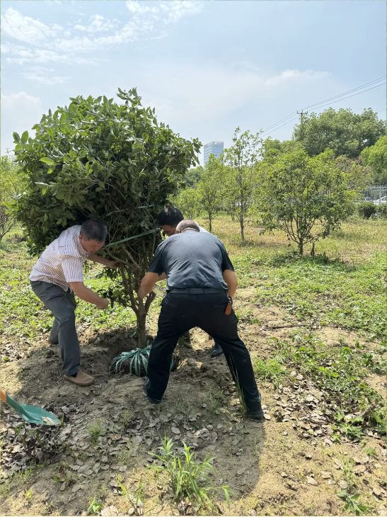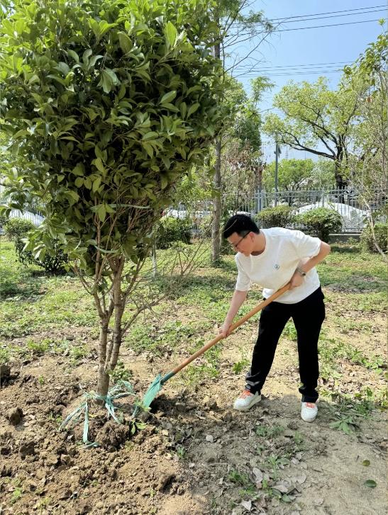 植树现场,苏科大老师与2024届毕业生代表、热心校友齐心协力、配合默契,从挥锹铲土开穴到立树培土围堰,再到回填踩实浇灌,每道工序有条不紊,各个环节认真细致,为苏科大江枫校区增添了一抹翠绿的风景线。